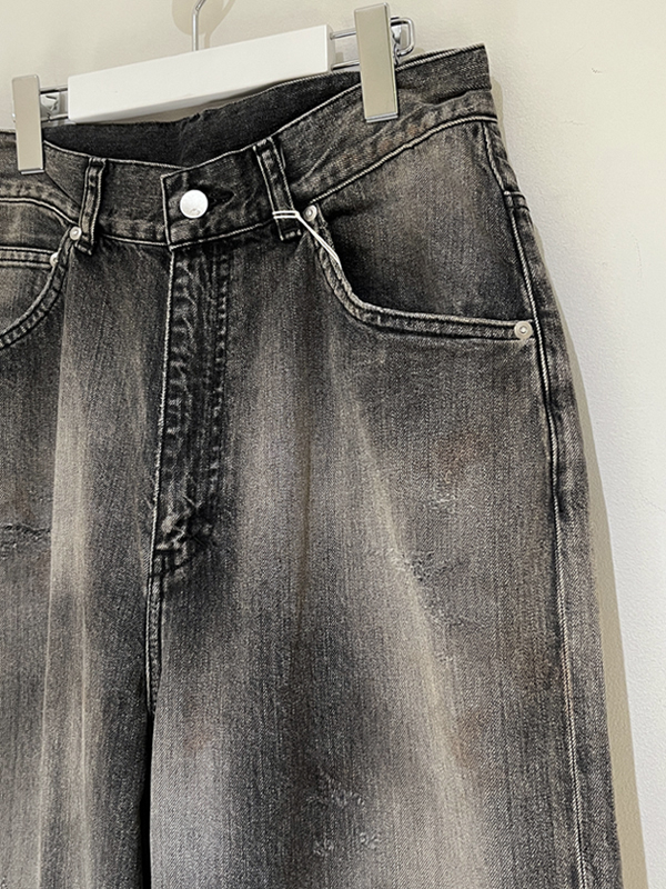 ANCELLM(アンセルム) #01 Aging01 Straight Wide Denim Pants(エイジングストレートワイドデニムパンツ) ブラック[4232]