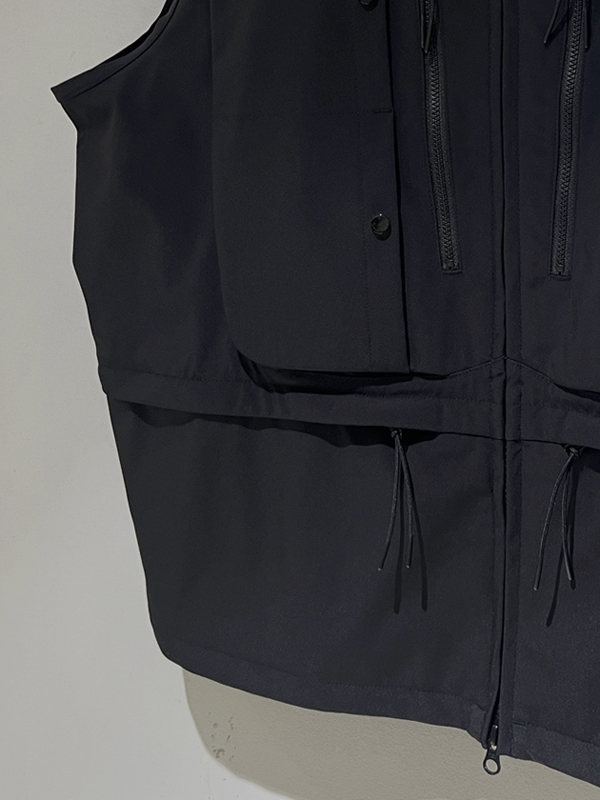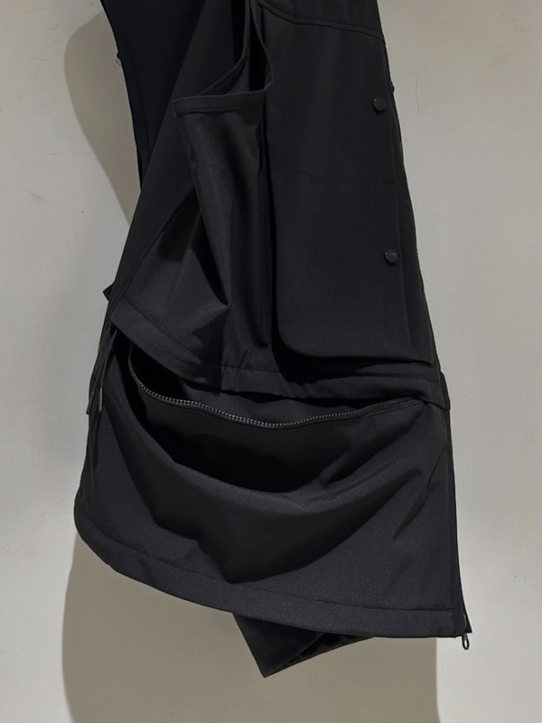 胸にマチのあるジップポケット、裾のジップポケットは背面まで巻くように大きめに作られており、デザイン性にも優れています。