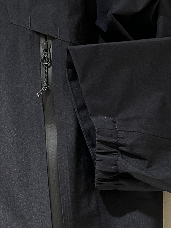 防水透湿素材ゴアテックスのシェル(ポリエステル100%)、フロント・左右のポケットは止水ジッパーが採用されております。