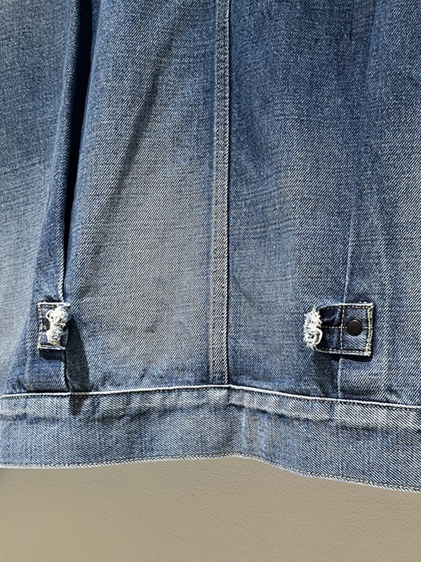 素材は100%コットン、ユーズド加工されたインディゴカラーのデニムです。