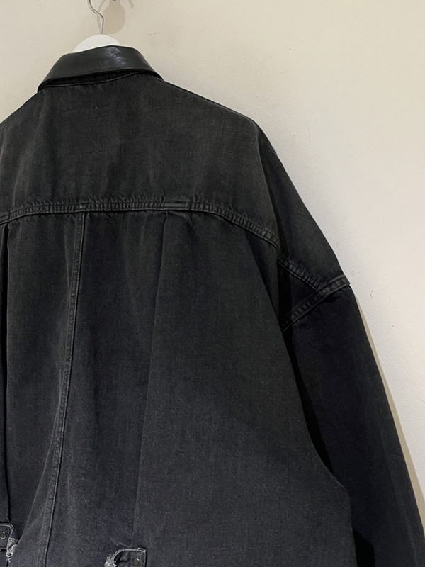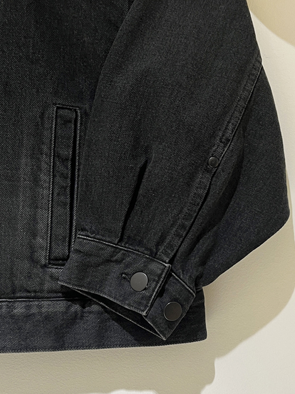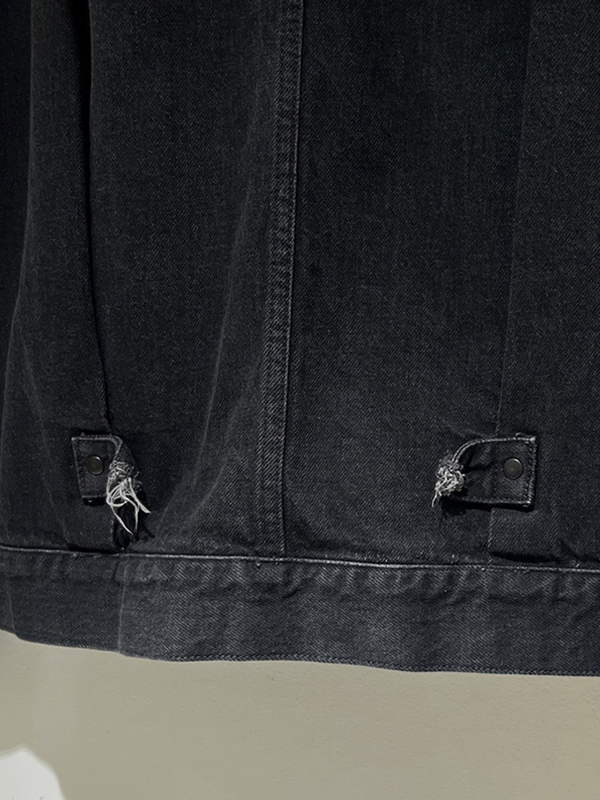 素材は100%コットン、ユーズド加工されたブラックデニムです。