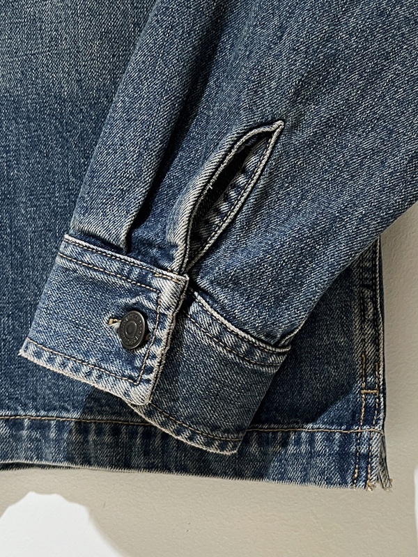 ミディアムトーンにウォッシュ加工され、袖にはヒゲが見られる加工が施されております。