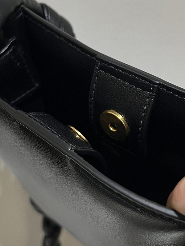 質の高いスムースな羊革ボディ、手作業で編み込まれたレザーのショルダーストラップがこのモデルの特徴です。