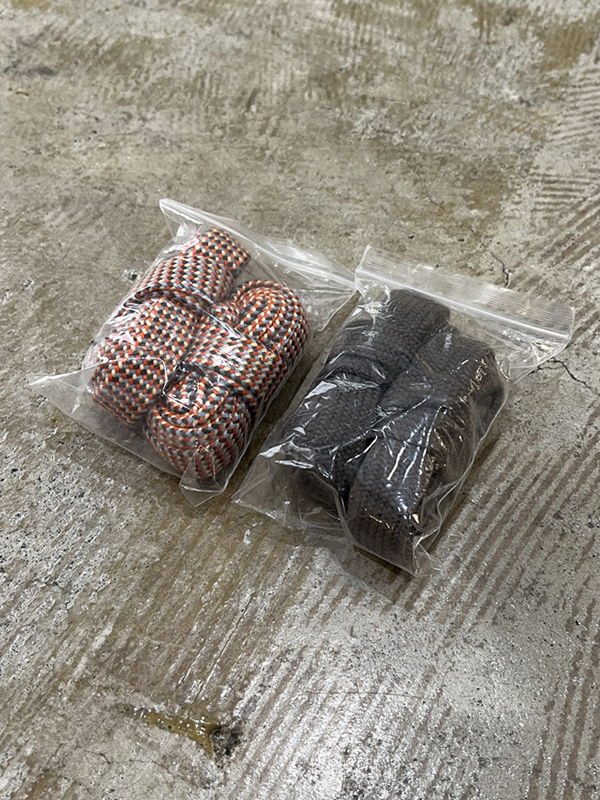 全3種類のシューレースが付属します。(同系色の丸紐と平紐(ファットレース)の他、マルチカラーの平紐(ファットレース)の3種類)