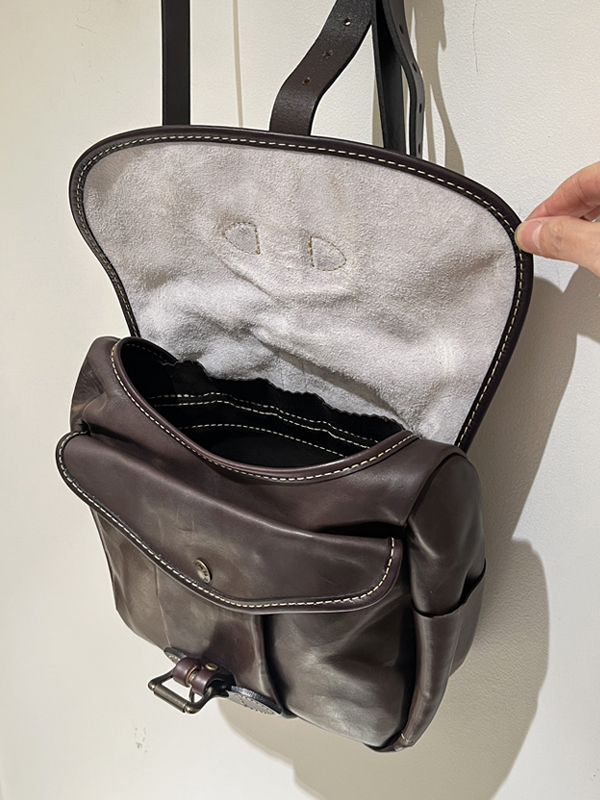 ボディの深みのあるブラウンレザー(牛革)はFILSONらしいタフさ感じられるしっかしした革質です。