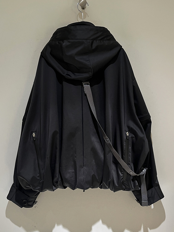 背中のストラップはデザイン性だけでなく、脱いだジャケットを背負ったりできる機能性も持っています。(背中のストラップも着脱可能です。)