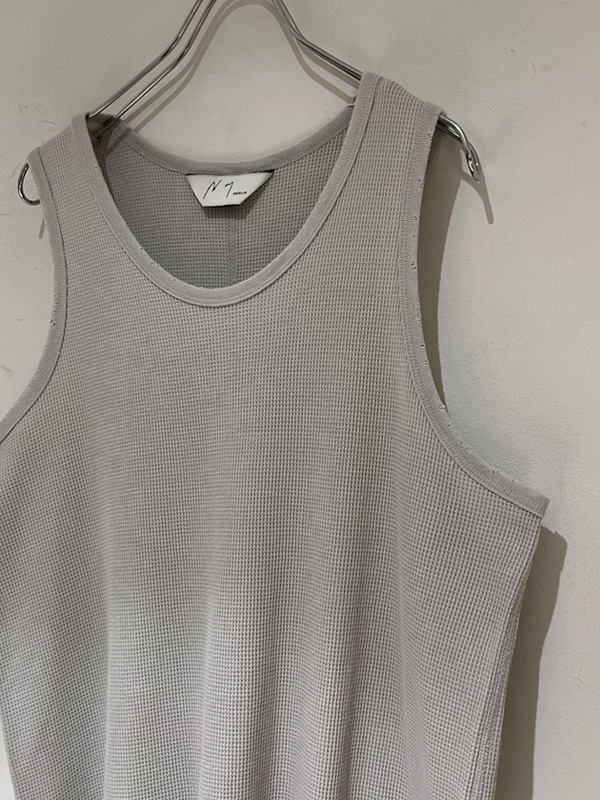 素材は100%コットン、ライトオンスなワッフル素材(サーマル地)のタンクトップです。