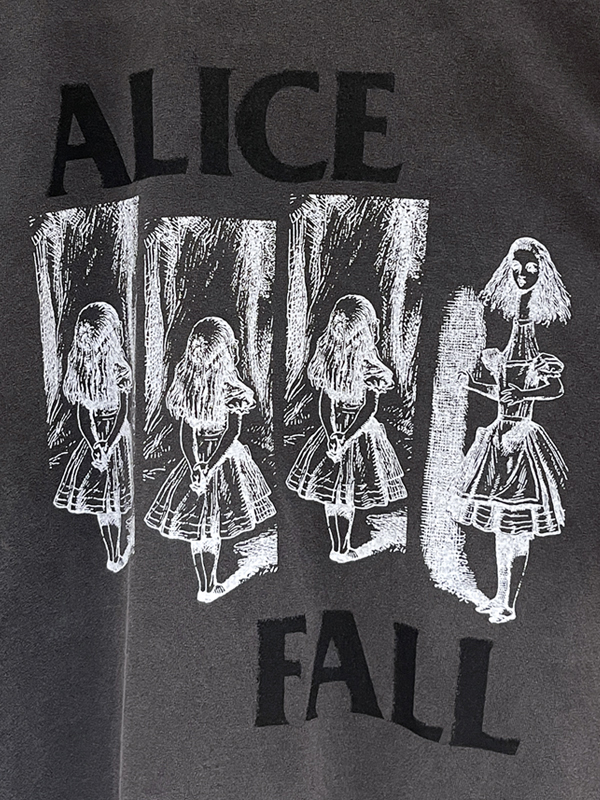 不思議の国のアリスをモチーフにハードコアパンクバンド「BLACK FLAG」のロゴデザインに落とし込んだプリントです。